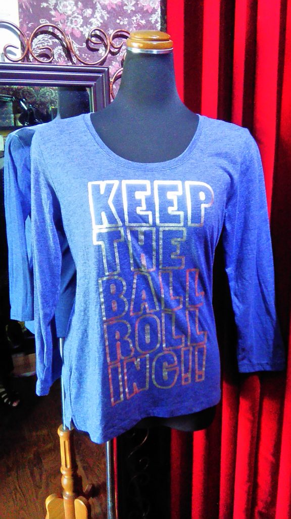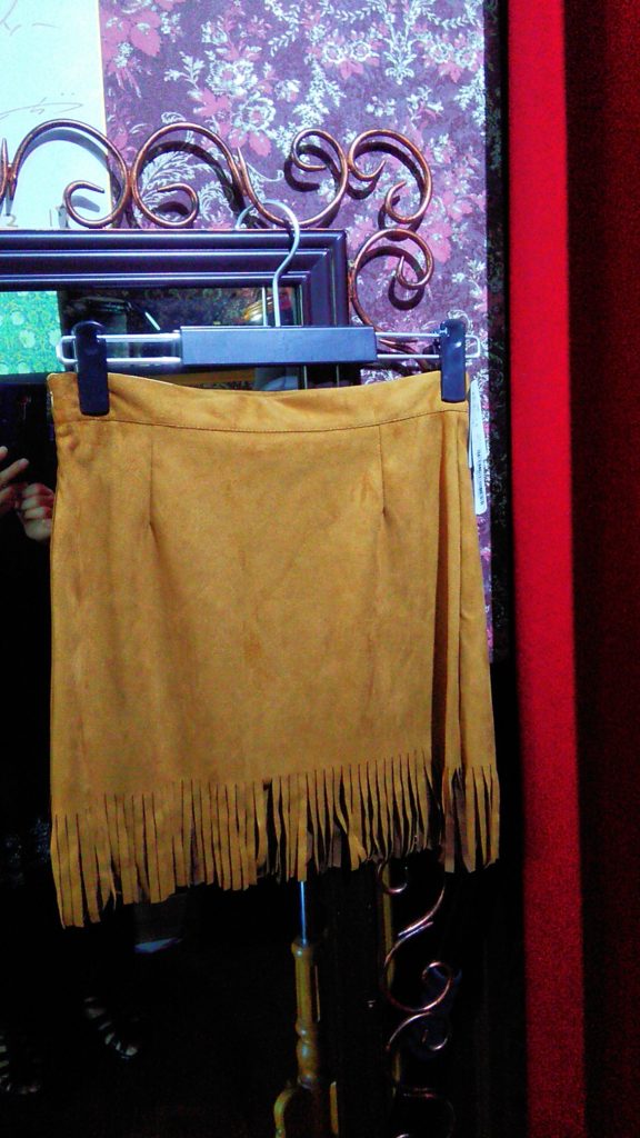 ダンガリー×英字柄・カットソー、パープル×DOG・Tシャツ、新品のキャラメル×裾フリンジ・ミニスカートをお買い上げくださいました👗