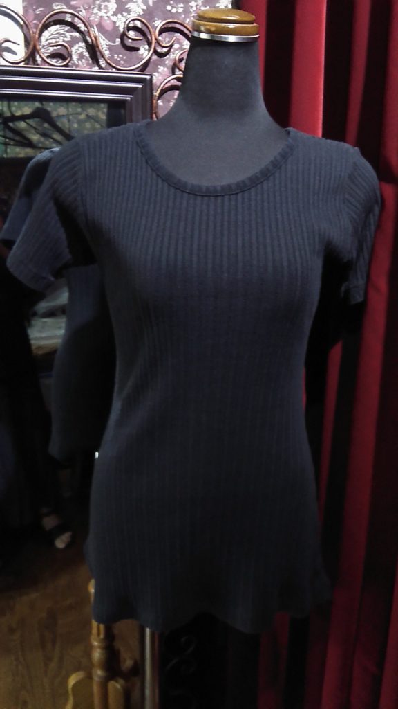 新品のネイビー柄・Tシャツ👕、ブラック・カットソー、ブラック・ロングスカート、ブラウン×フラワー・シフォンスカーフをお買い上げくださいました👗
