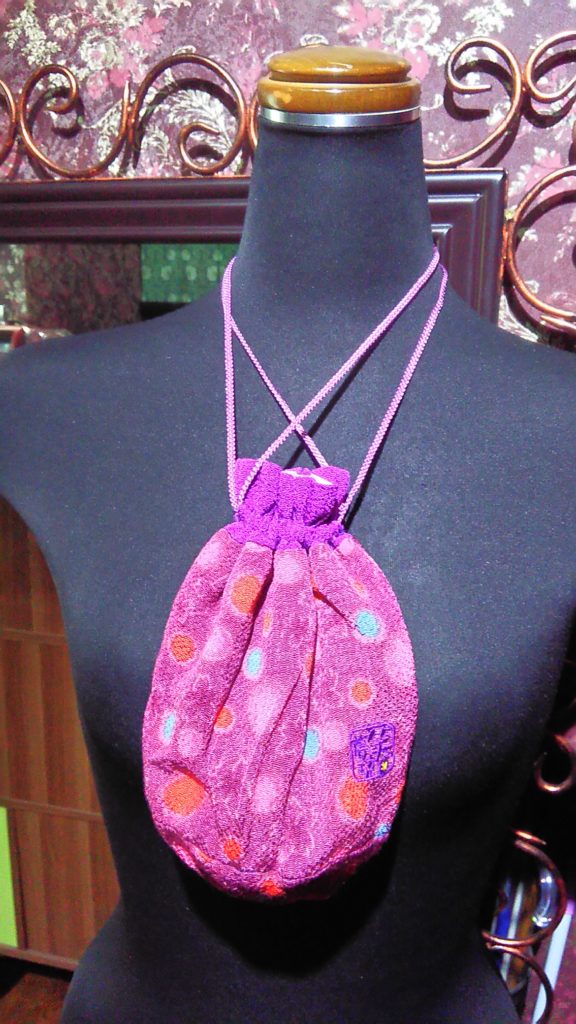 入荷したての、パープル×ドット・ちりめん巾着袋をお買い上げくださいました👗👝