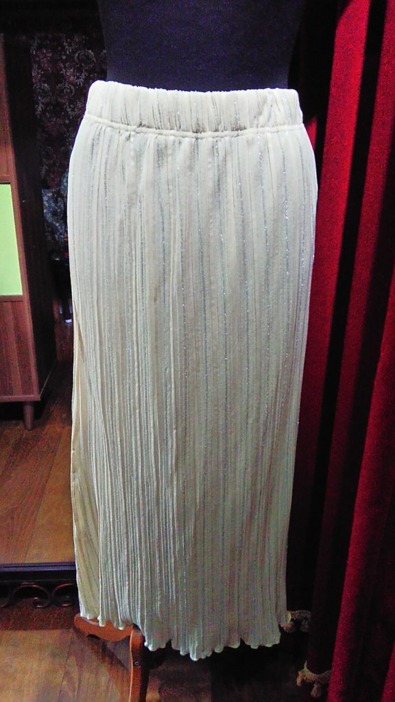 ブラック×グレーフラワー・ワンピース、ブラック×ライトブルーフラワー・ワンピース、ネイビー×モスグリーン・チュニック、オフホワイト×ラメ・プリーツロングスカート、ネイビー・スカート、グレー・スカート、ネイビー柄・パンツ、ブラック・パンツ👖