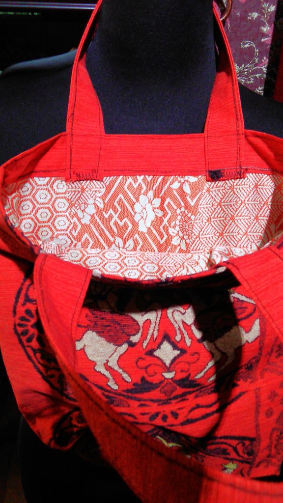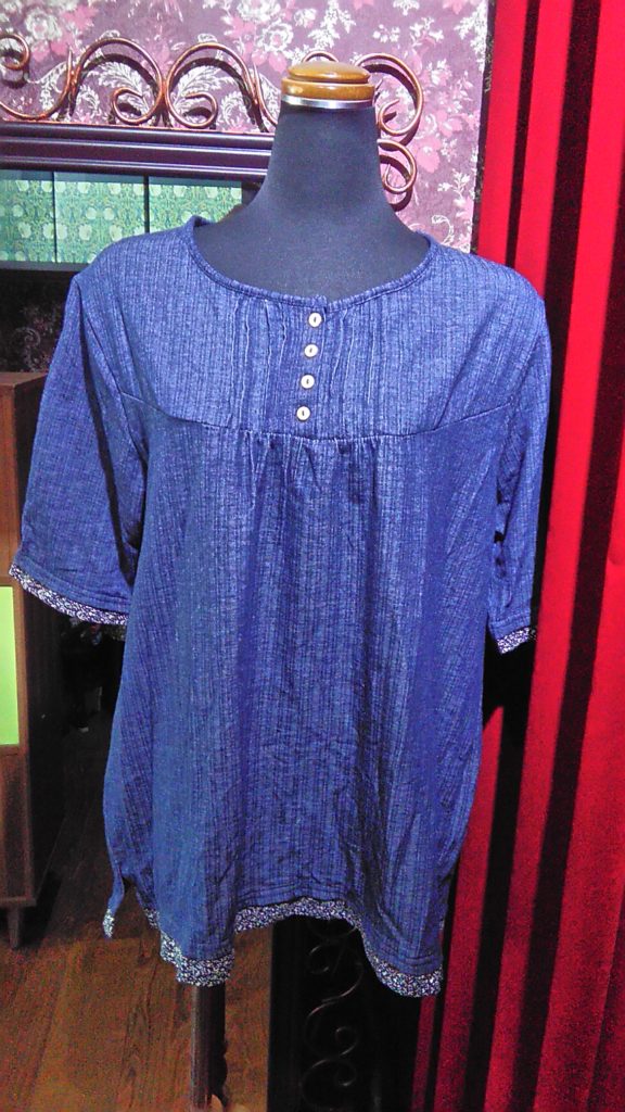 ネイビー×ストライプ×レース・チュニック、MEN’Sのネイビー×ストライプ・Tシャツ(写真なし🙇💦)👕、手作りの朱赤×和柄・手提げバッグをお買い上げくださいました👗👜