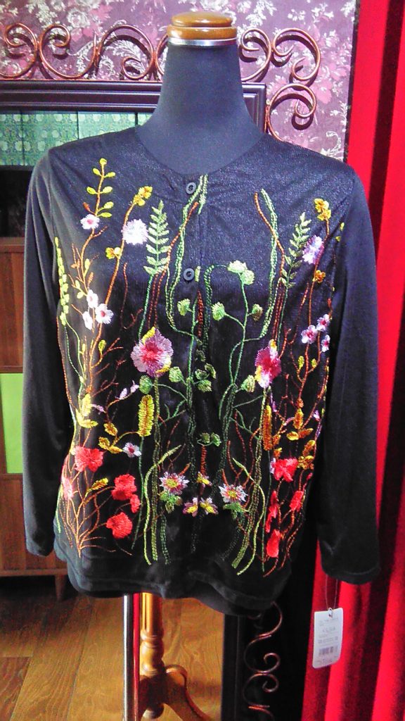 新品のブラック×刺繍フラワー・カーディガン、ブラック×フラワー・透け感カーディガン、グレー×フラワー・チュールマントカーディガン
