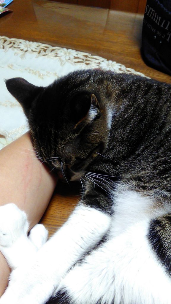 少し距離をとっていましたが、Mさんからおやつを食べさせてもらって満足なこぶちっち😺😺🍚