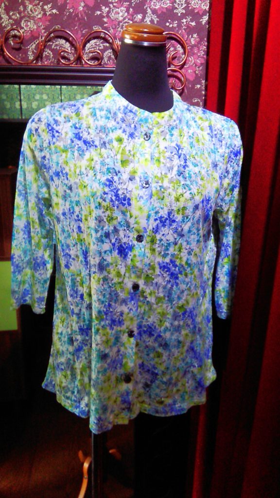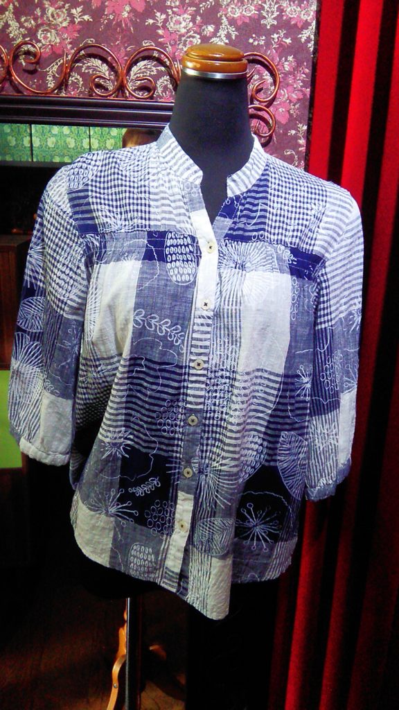 入荷したての、ネイビー×チェック×フラワー・ブラウス、ホワイト×ライトブルー小花・カーディガンをお買い上げくださいました👗