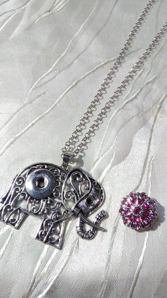 ご予約頂いていた、ゾウさん・18ミリスナップボタンネックレス、あわせてピンク×ラインストーン・18ミリスナップボタン