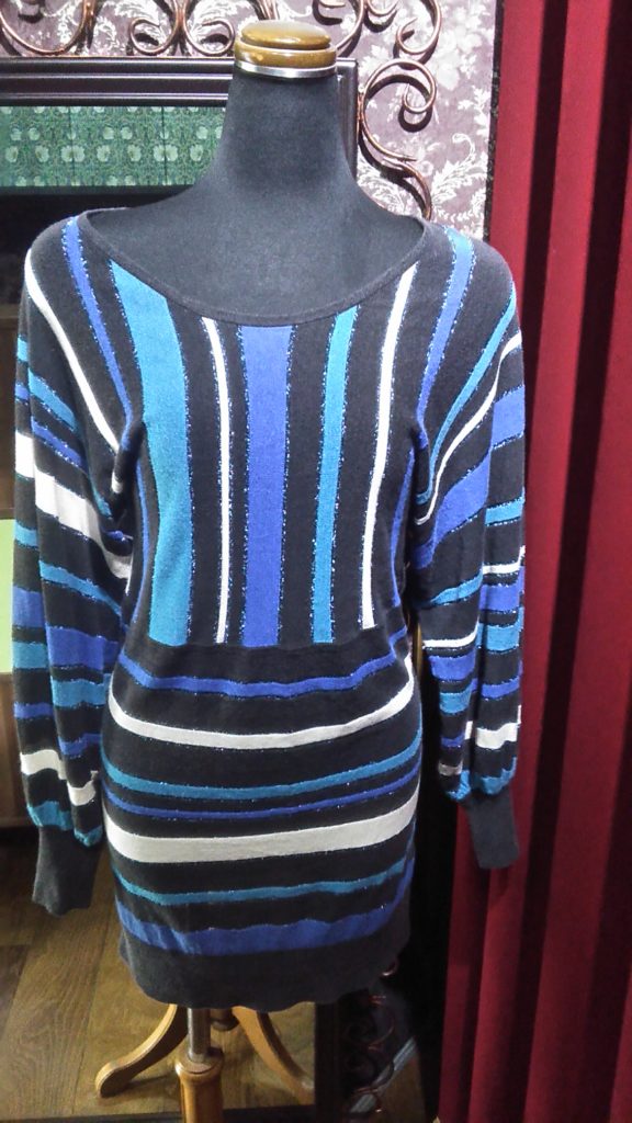 入荷したての、FRENCH CONNECTIONのブルー×ストライプ・ニットチュニック、ブラック・チュニック