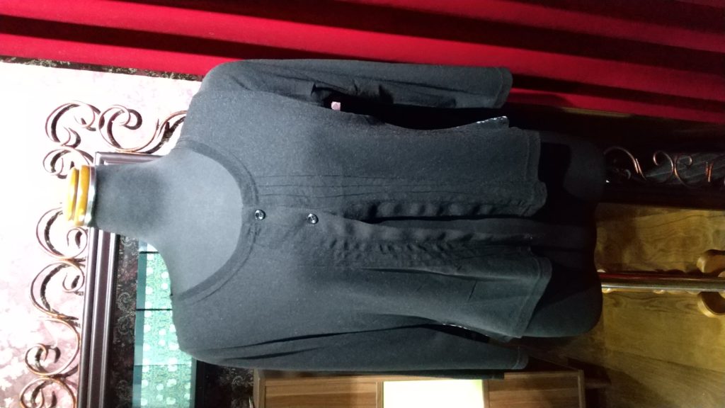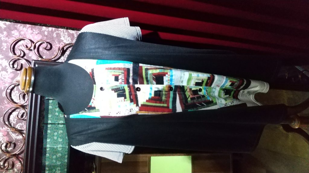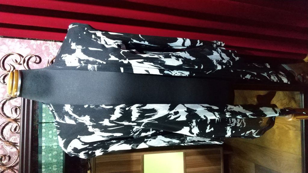 ブラック×柄×ストライプ・チュニック、ブラック×小花・カーディガン、ブラック×ホワイト柄・カーディガン