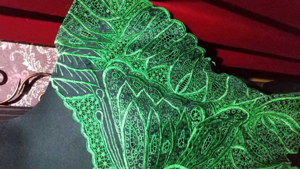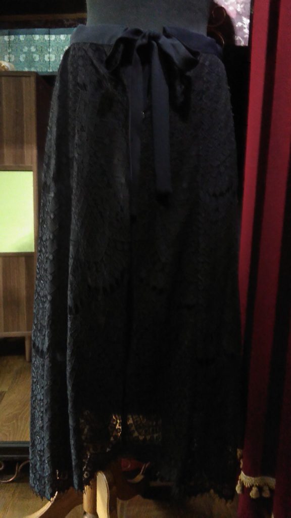 ブラック×総レース・2枚仕立てロングフレアスカート、NICE CLAUPのブラック×プリーツ・シフォンロングフレアスカート