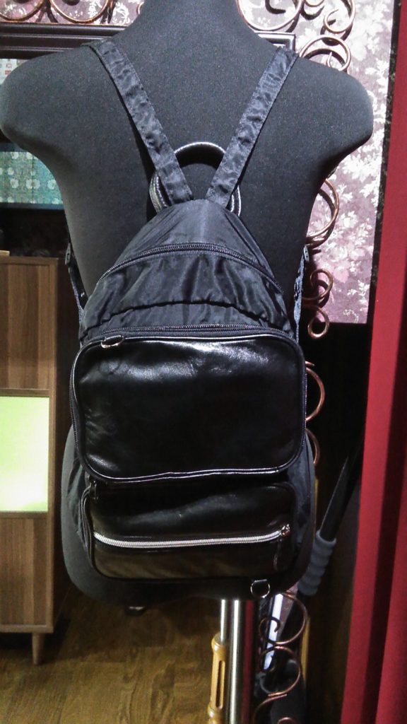 ブラック・リュックサックになるショルダーバッグ、新品のミッフィー・ミニタオル2枚、新品のトトロ・ミニタオル