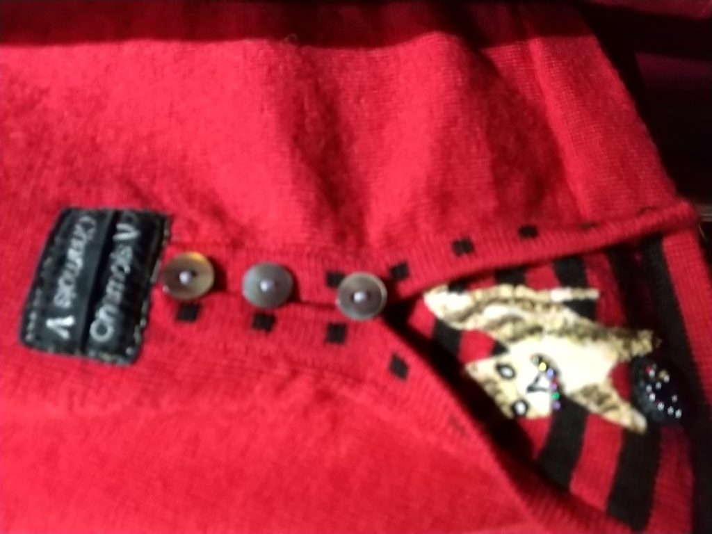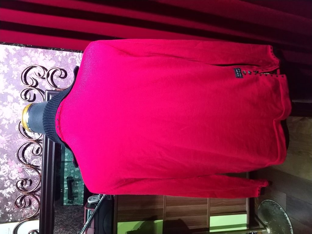ブラック×グレー・ジャケット、レスピーギのレッド・ハーフコート、ブラック×ストライプ・ニットジャケット
