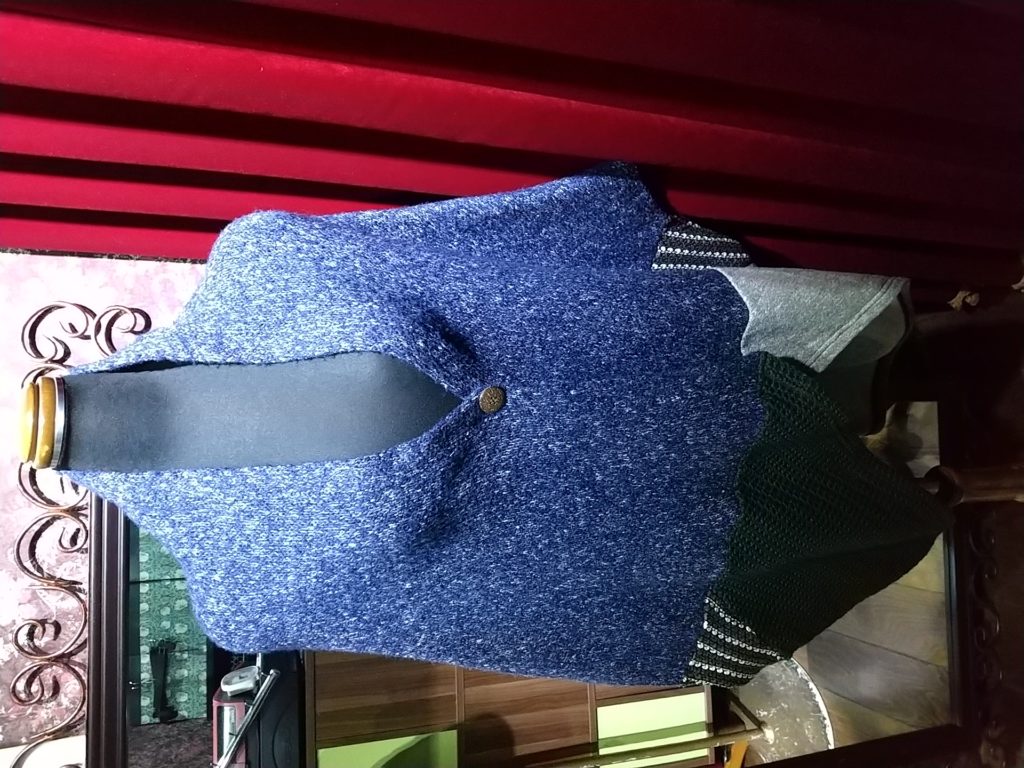 入荷したての、ネイビー×パッチワーク・ニットボレロ
