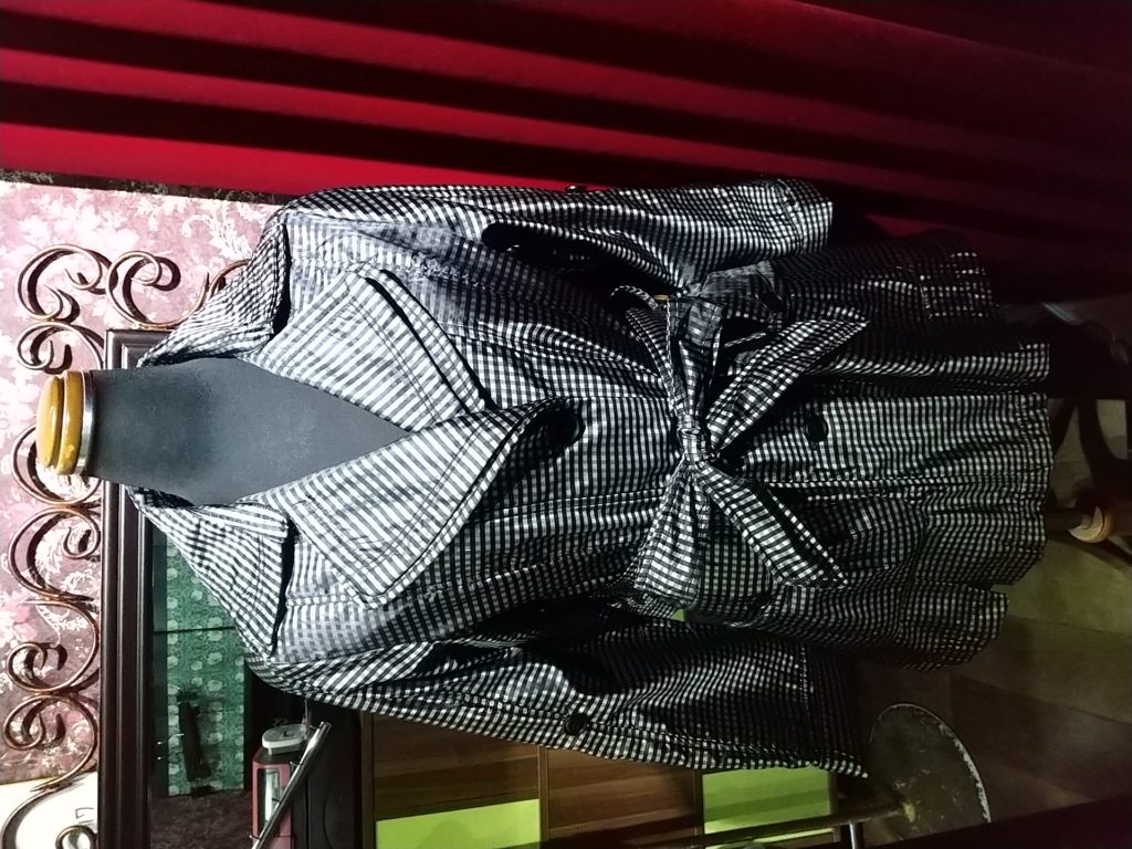 ETROのグレー×チェック・ハーフコート、ブラック・チュニック、ブラック・ジャケット、ブラック・ロングタイトスカート、ボルドー×時計・ストールをお買い上げくださいました👗