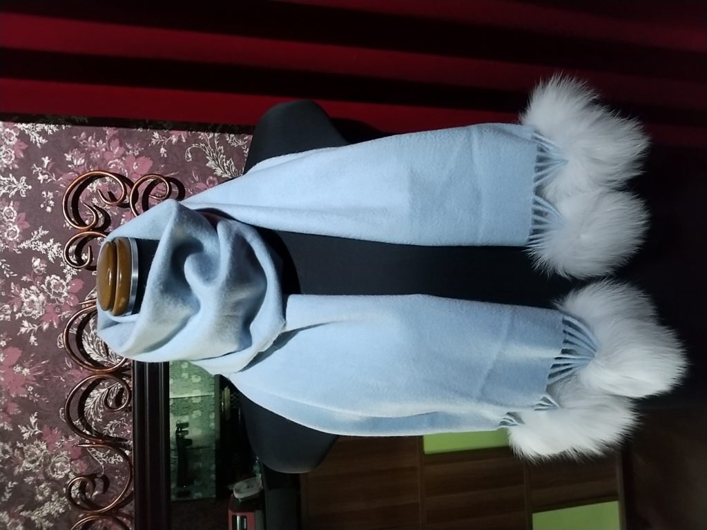 オレンジ×フリンジ・ニットスヌード、ライトブルー×FOX・カシミアマフラーをお買い上げくださいました👗🧣