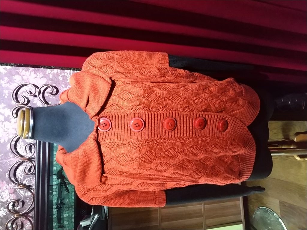 ご予約頂いていた、オレンジ×ブラック・ニットカーディガン、グレー×チェック・ハーフコート