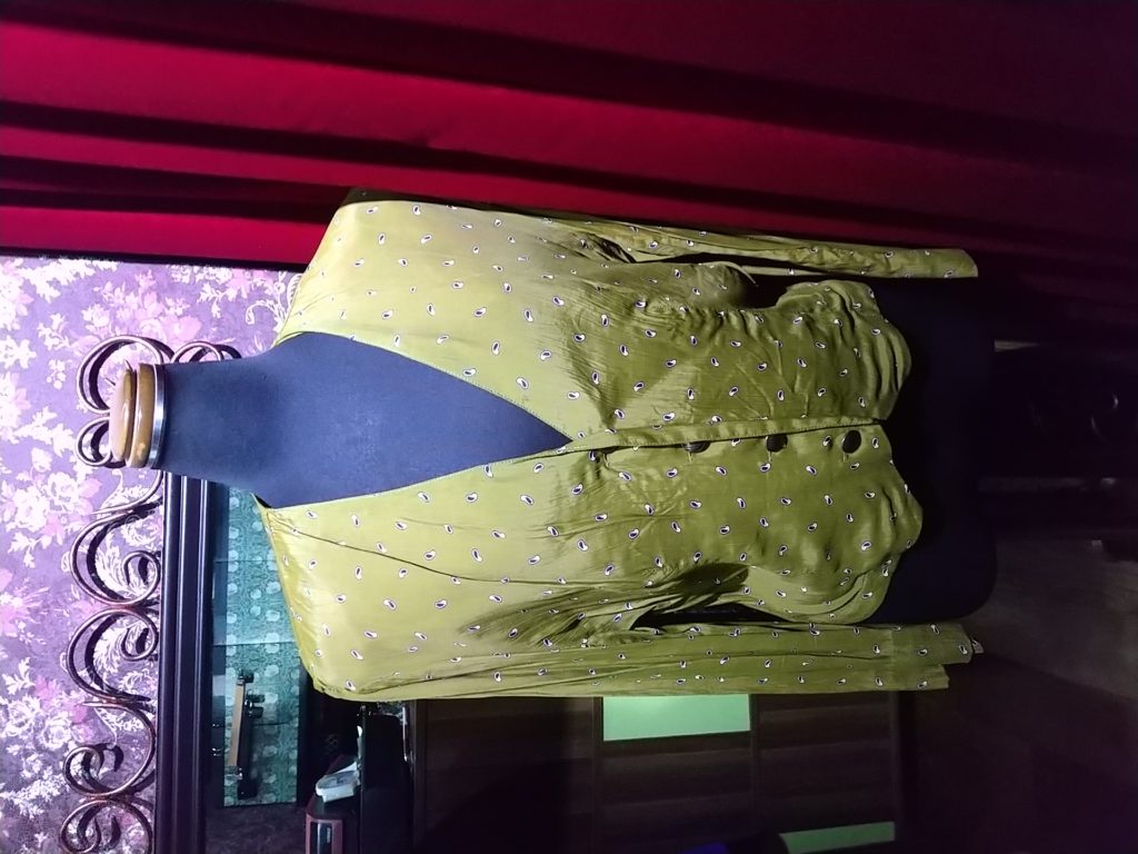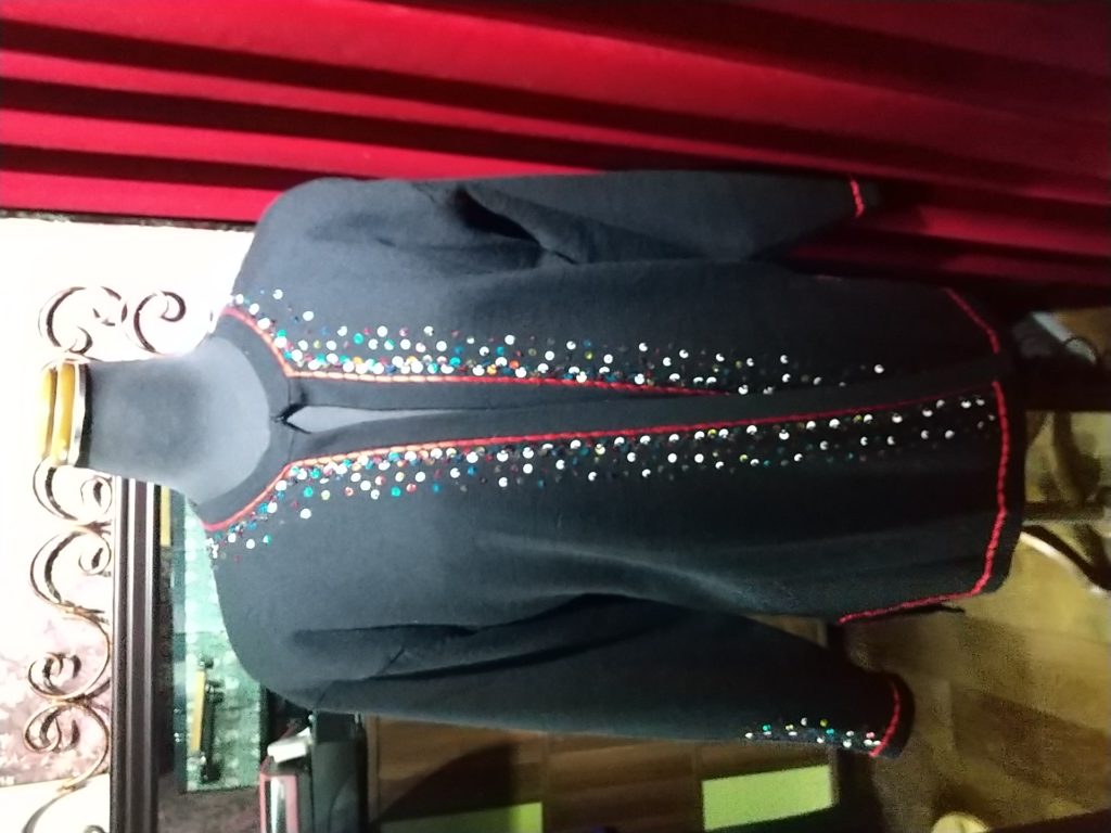 ブラック×スパンコール・ニットカーディガン、ブラック×ラインストーン・カットソー、カラシ柄・カーディガン、ラインブルー・ブラウスをお買い上げくださいました👗