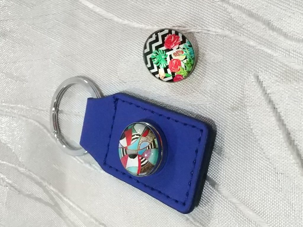 新品のブルー・18ミリスナップボタンキーホルダー、スナップボタン2個をお買い上げくださいました🎵