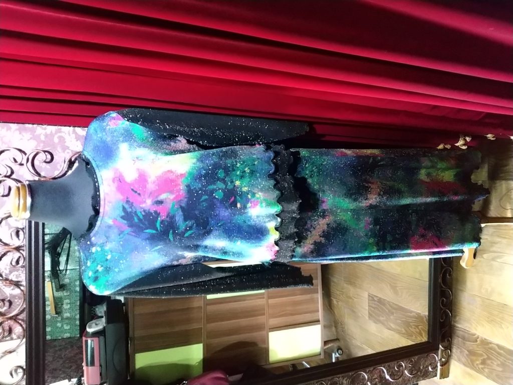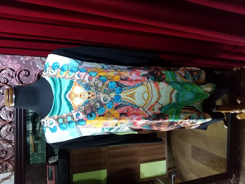 入荷したての、FASHION MESSAGEのブラック×アクセサリー柄・チュニック、レッド×フラワー・チュニック、ブラック・カーディガン、カラフルフラワー×ラメ・セットアップ