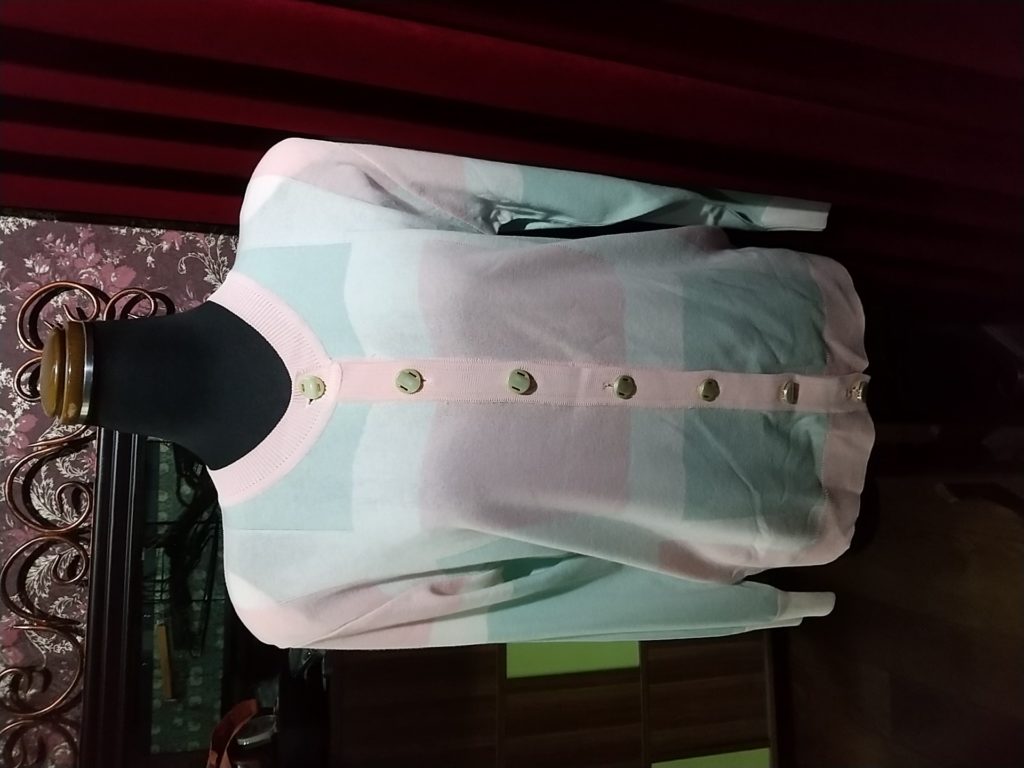 ピンク×ライトブルー・ニットカーディガン