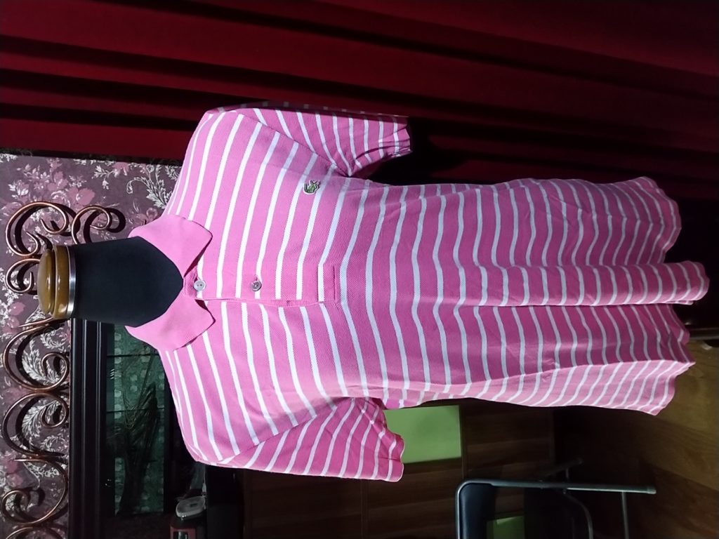 LACOSTEのピンク×ストライプ・ポロシャツ、レッド×フラワー・チュニック、グレー×ストライプ・チュニック、赤茶・カーディガン、オレンジ・パンツをお買い上げくださいました👗👖
