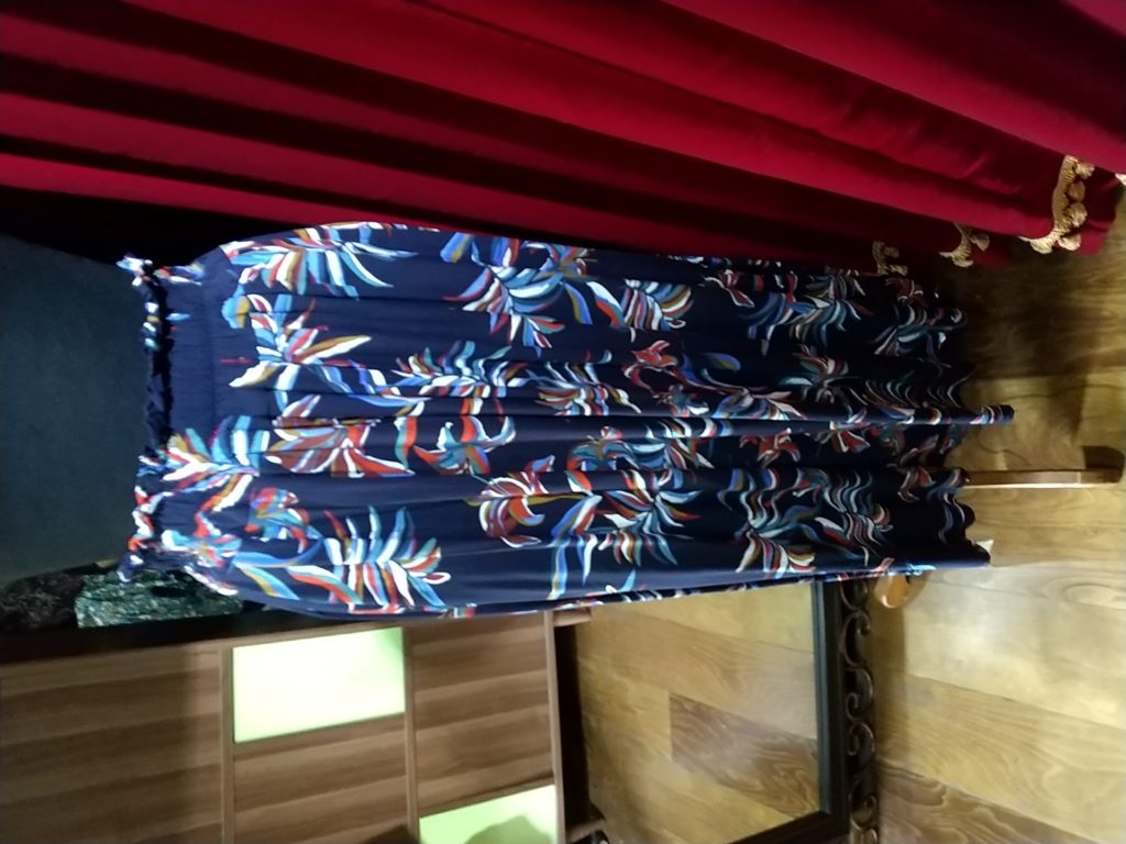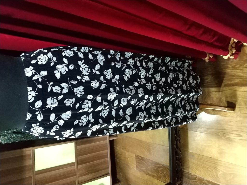 ブルー柄・ロングフレアースカート、ネイビー×リーフ・ロングフレアースカート、ブラック×ローズ・ロングタイトスカート、ブルー・ロングキュロットスカート