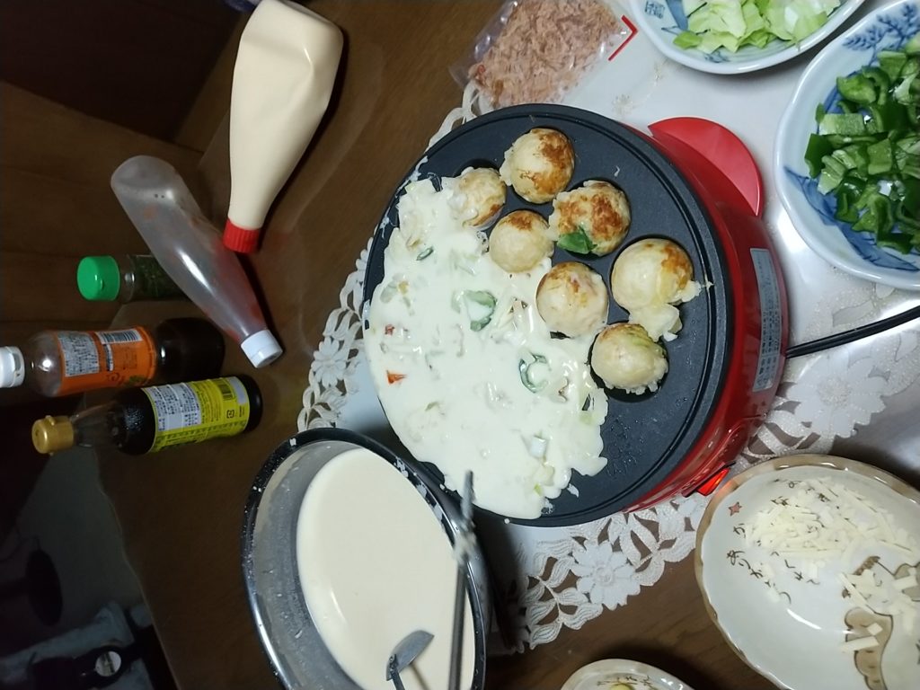 お好み焼きの粉があったのでたこ焼きパーティーする事にしました🐙