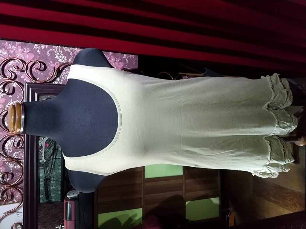 ライトグリーン・チュールジレ、マスタード×和柄・ジャケット、ベージュ×裾フリル・タンクトップ