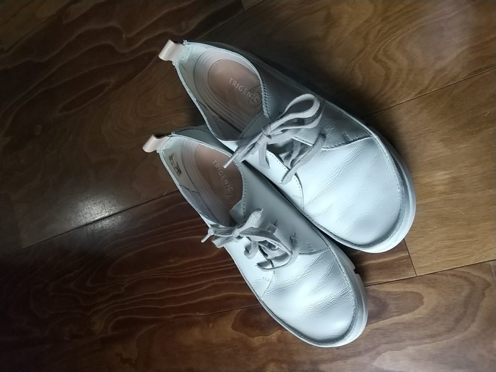 ご予約頂いていた、ネイビー×ドット・ハーフブラウス、ホワイト・本革シューズ、新品のブラック・スニーカー👟