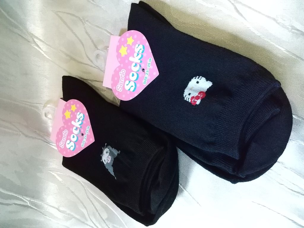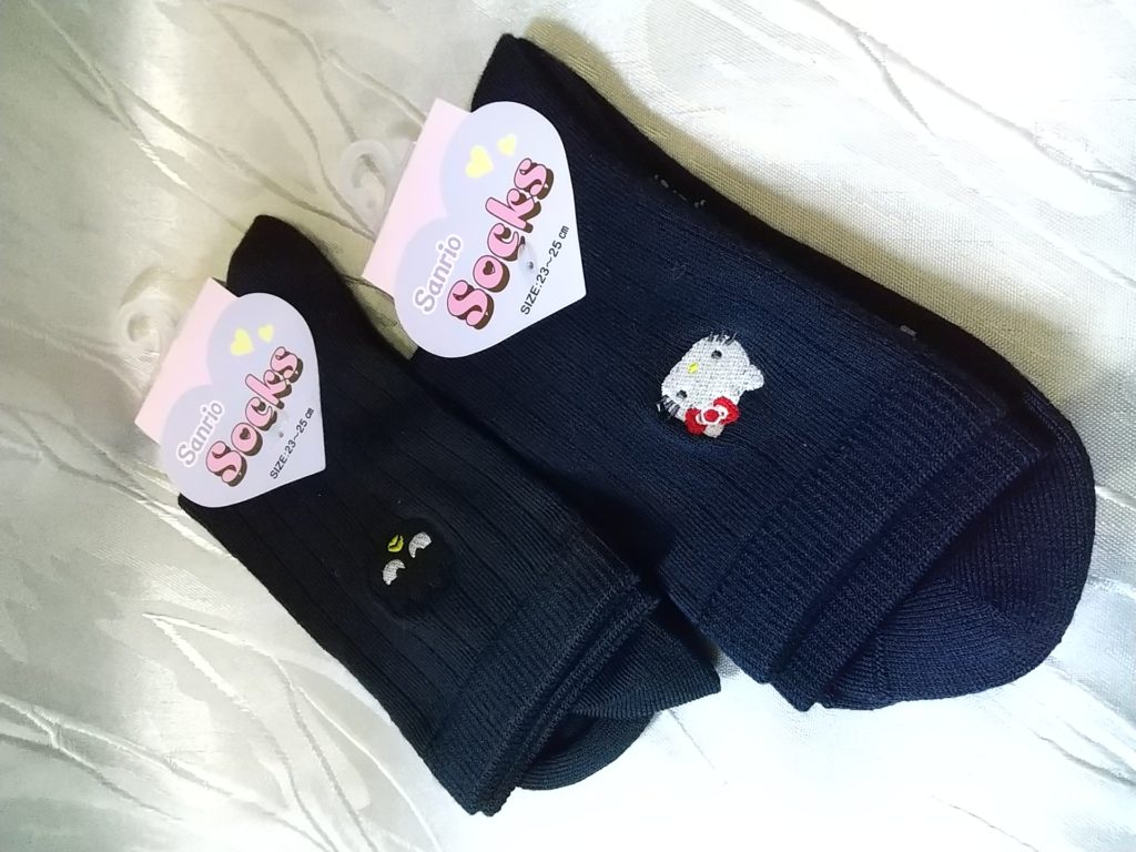 新品のブラック×キティちゃん・靴下2足、ブラック×バツ丸・靴下、ブラック×クロミちゃん・靴下🧦