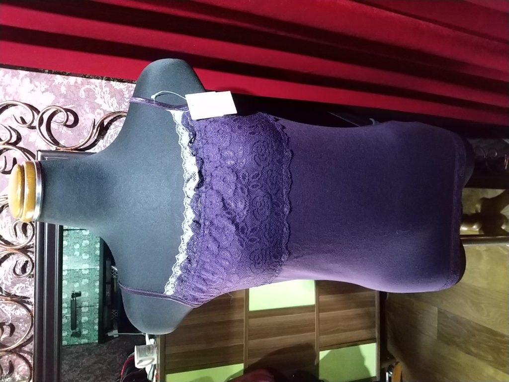 入荷したての、新品のパープル×レース・キャミソール、ブラック×カラフルレース・キャミソール