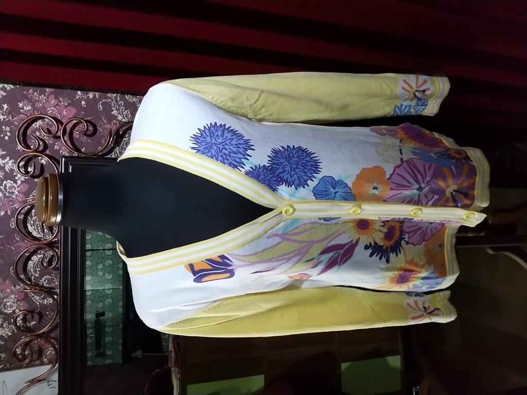 ホワイト×アップリケフラワー・タートル、ホワイト×カラフルフラワー・ニットカーディガン、グレー×チェック・チュニックをお買い上げくださいました👗