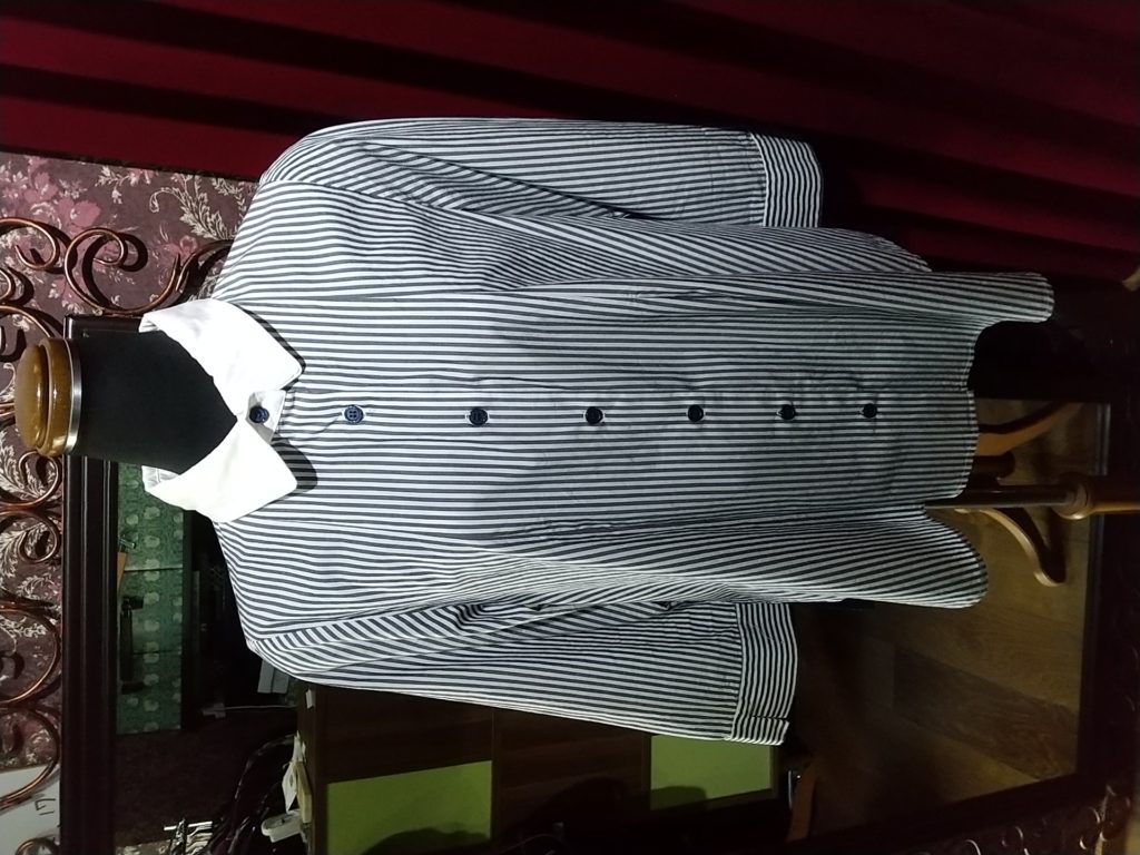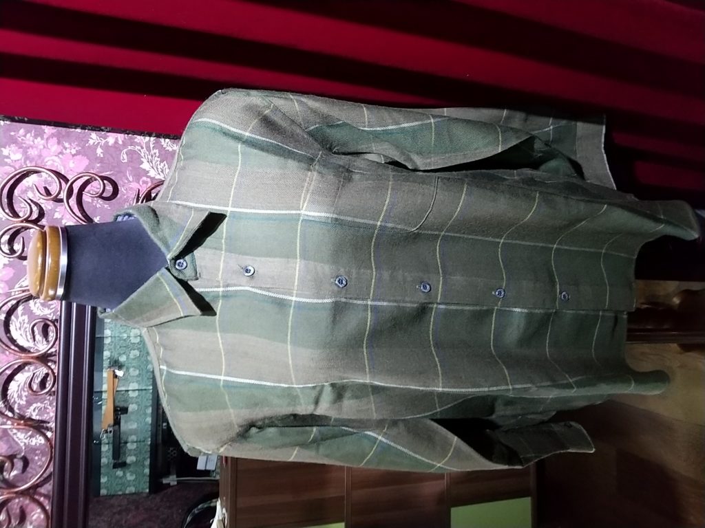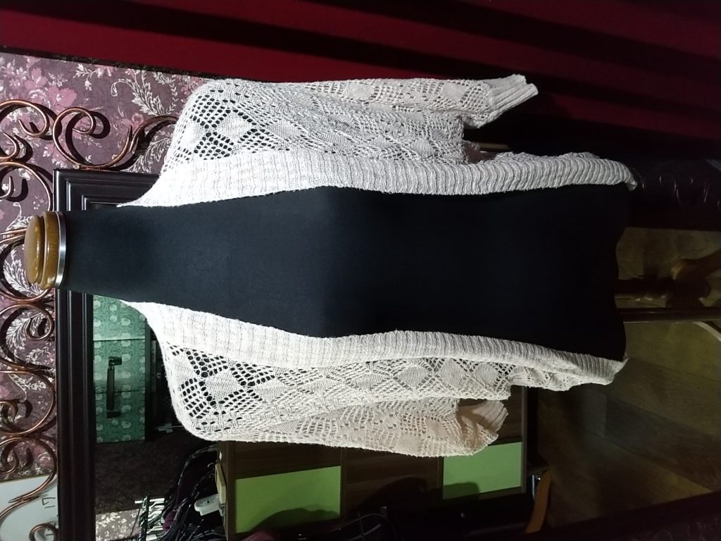 ベージュ×刺繍・ブラウス、ストライプ・ブラウス、MEN’Sのカーキ×チェック・ブラウス、ブラック柄・カーディガン、オフホワイト・ニットカーディガン