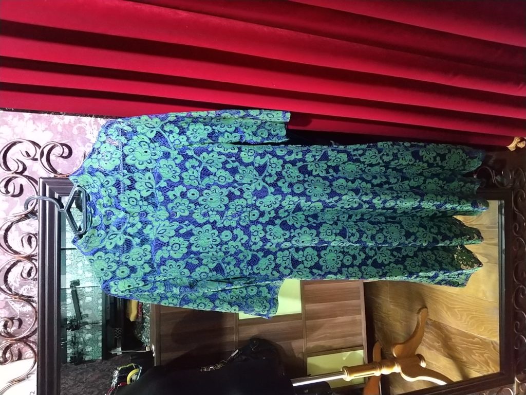 入荷したての、ネイビー×グリーンフラワー・ヴィンテージワンピース、デニム×ペイズリー・ブラウス、ブラック×グレーフラワー・チュールロングジレ