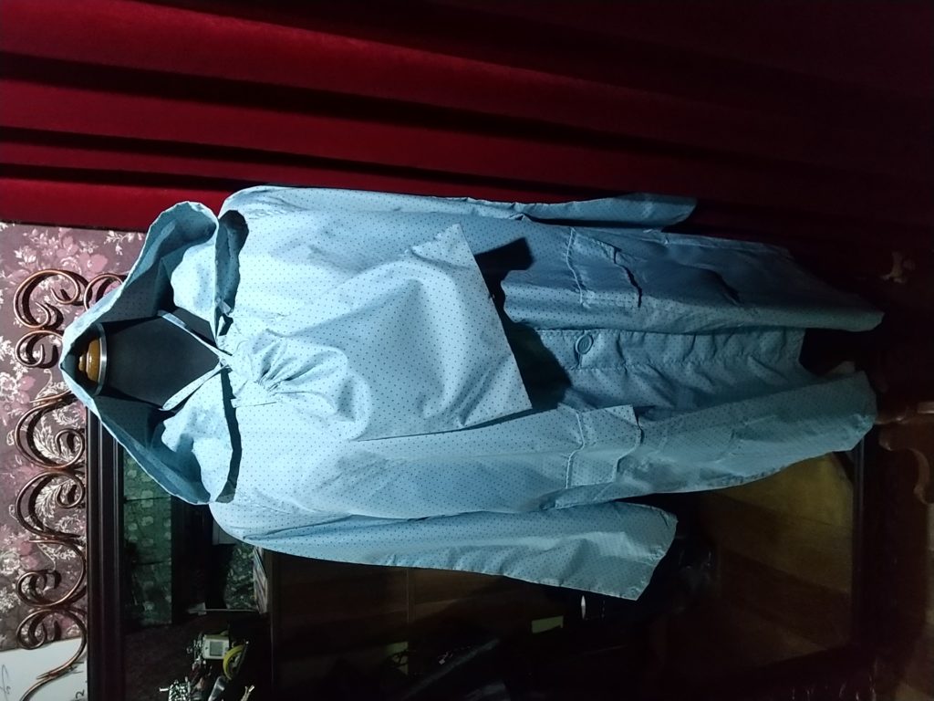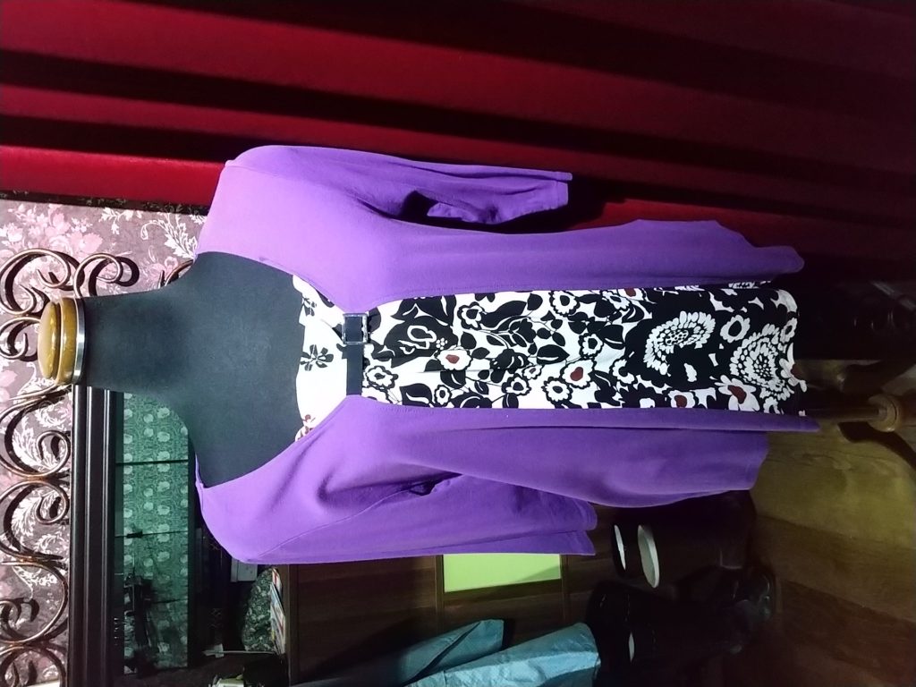 パープル×フラワー・チュニック、ライトブルー×ドット・レインコート