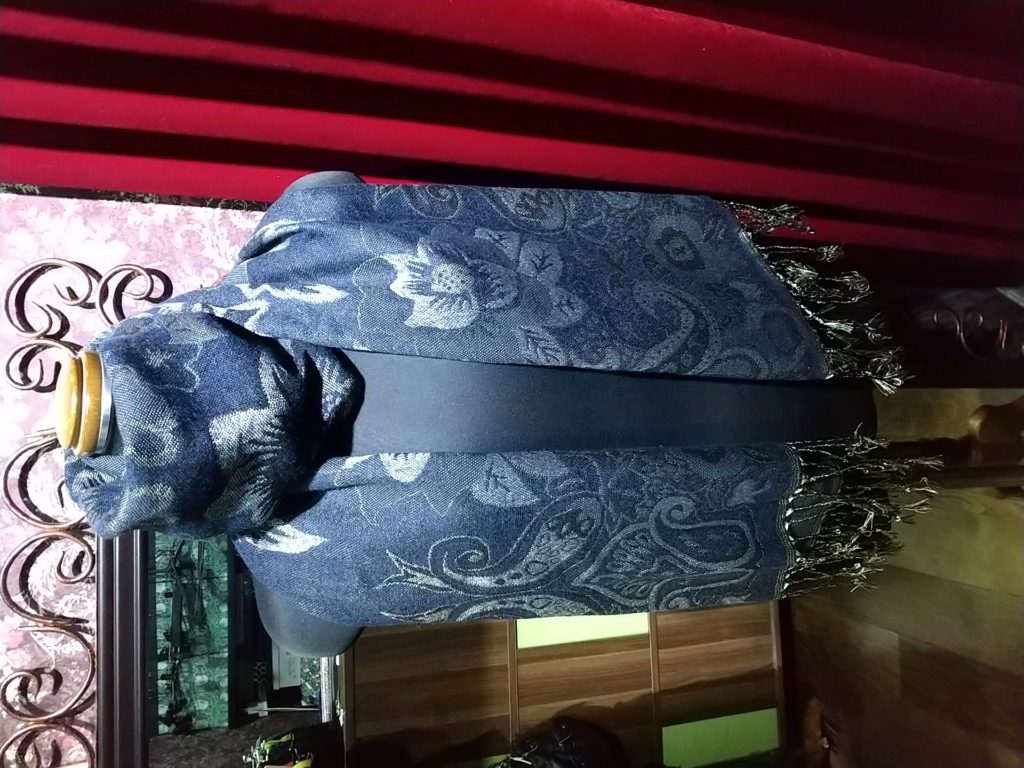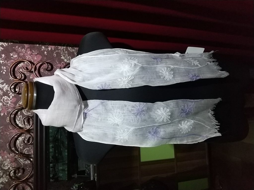 ネイビーフラワー・ストール、新品のホワイト×刺繍・ストール