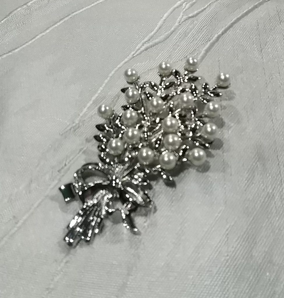 グレー柄・プリーツスカート、ネックレス、新品のパール・ブローチをお買い上げくださいました👗✨