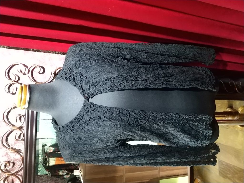 そして、Yさん😊新品のブラック柄・ロングワンピース、新品のホワイト×アップリケフラワー・タートル、ブラック×総レース・カーディガン