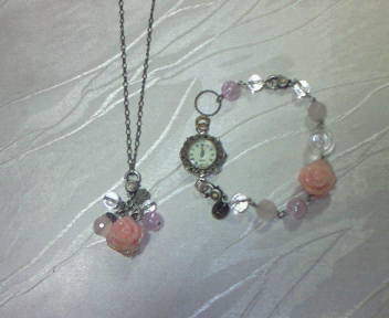 | No.14 Neckrace 18000yen Wrist Watch 10900yen (Braceletのみ8900yen) (淡水パール等を使用) |