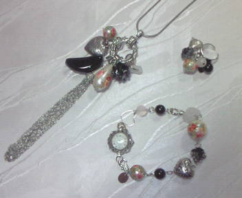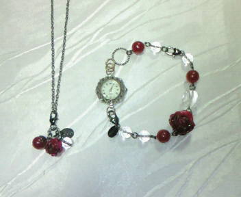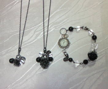 | No.6 Neckrace 15800yen (SOLD OUT) Wrist Watch 8900yen (Braceletのみ6900yen) (SOLD OUT) Ring 8900yen (SOLD OUT) (オニキス、ローズクォーツ等を使用) |