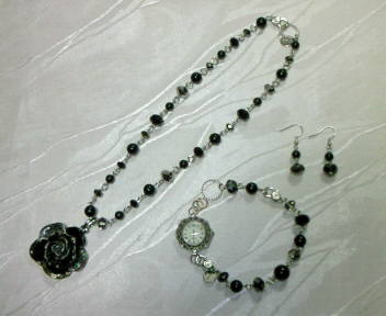 | No.8 Neckrace 15800yen (SOLD OUT) Wrist Watch 8900yen (Braceletのみ6900yen) (SOLD OUT) Pierce 2900yen (オニキス等を使用) (SOLD OUT) |