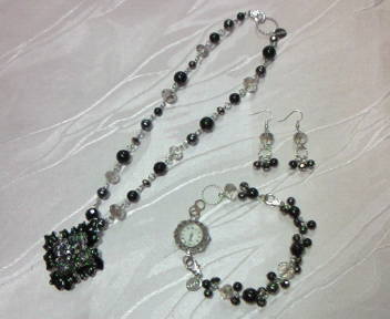 | No.28 Neckrace 7900 yen (SOLD OUT) Wrist Watch 9900 yen (ブレスレットのみ7900yen) (SOLD OUT) Ring 9800 yen Pierce 5900 yen (インポートビーズ等を使用) (SOLD OUT) |