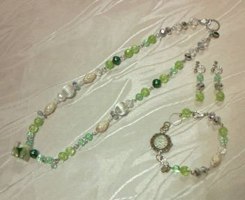 | No.18 Neckrace 10000 yen (SOLD OUT) Wrist Watch 8900 yen (Braceletのみ6900 yen) (SOLD OUT) Ear Ring 2900 yen (クラック水晶、ヴィンテージビーズ、インポートビーズ等を使用しています) |