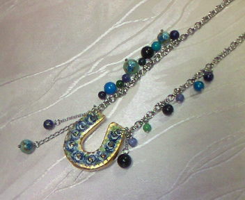 | No.23 Neckrace 18000 yen (SOLD OUT) (手書きトップ、ターコイズ、ラピスラズリ、クリソコララ、サンドストーン、ソーダライト等を使用しています) |