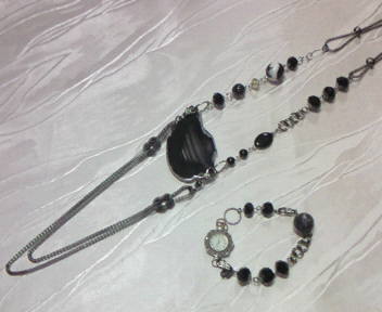 | No.29 Neckrace 15800 yen (メノウ、ゼブラストーン等を使用) (チェーンがはずせるので、アレンジができます) 時計 9900 yen (ブレスレットのみ7900円) (共にSOLD OUT) |