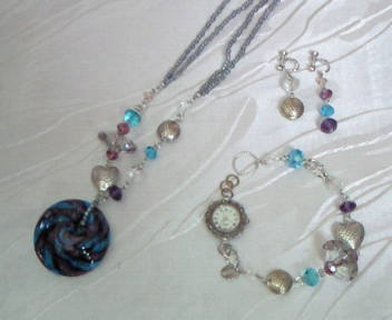 | No.2 Necklace 15800yen Wrist Watch 9900yen (Braceletのみ7900yen) Ear Ring 5900yen (ガラス、インポートビーズ等を使用) (全てSOLD OUT) |