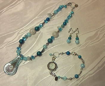 | No.9 Necklace 15800yen Wrist Watch 8900yen (Braceletのみ6900yen) Ear Ring 2900yen (ガラストップ、ターコイズ、クラック水晶等を使用) (全てSOLD OUT) |