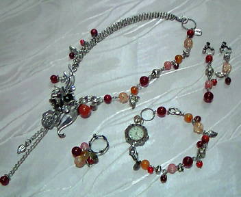 | No.13 Necklace 18000yen Wrist Watch 9900yen (Braceletのみ7900yen) (SOLD OUT) Ear Ring 5900yen Ring 7900yen (カーネリアン、スポンジ珊瑚、メノウ等を使用) (SOLD OUT) |