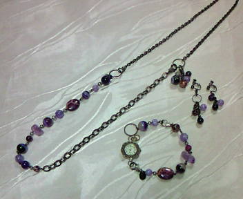 | No.2 Necklace 12800yen (SOLD OUT) Wrist Watch 9900yen (Braceletのみ7900yen) (SOLD OUT) Ear Ring 5900yen (アメジスト、メノウ、パープルインプレッションを使用) (Necklaceがアレンジできます) (SOLD OUT) |