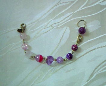 | No.6 Wrist Watch 9900yen (Braceletのみ7900yen) (ローズクォーツ、クラック水晶、メノウ、パープルインプレッション、水晶を使用) (SOLD OUT) |