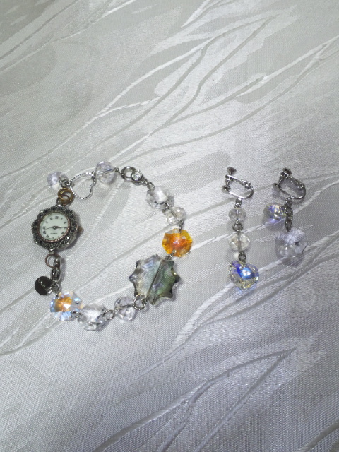 | No.12 Wrist Watch 8900yen (Braceletのみ6900yen) Ear Ring 5900yen (インポートガラス等を使用) (全てSOLD OUT) |