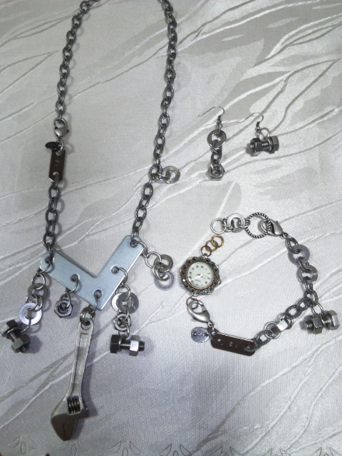 | No.14 Necklace 15800yen Wrist Watch 8900yen (Braceletのみ6900yen) Pierce 5900yen (スパナ、ビス等を使用) |